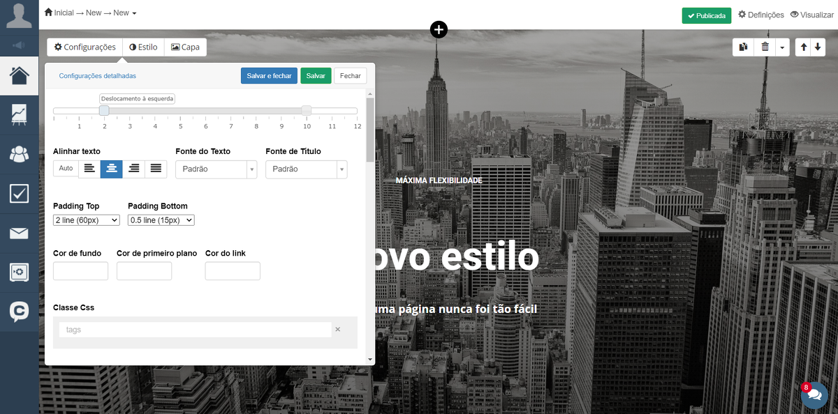 Também é possível ajustar o nível de opacidade e definir as margens.