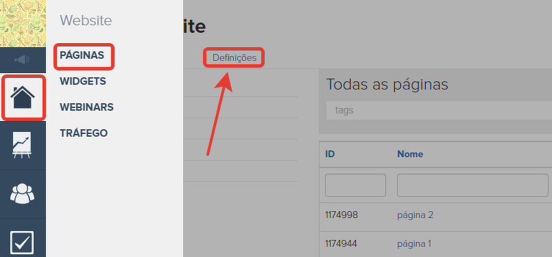 Preste atenção que: essas configurações não se aplicam às páginas do sistema.