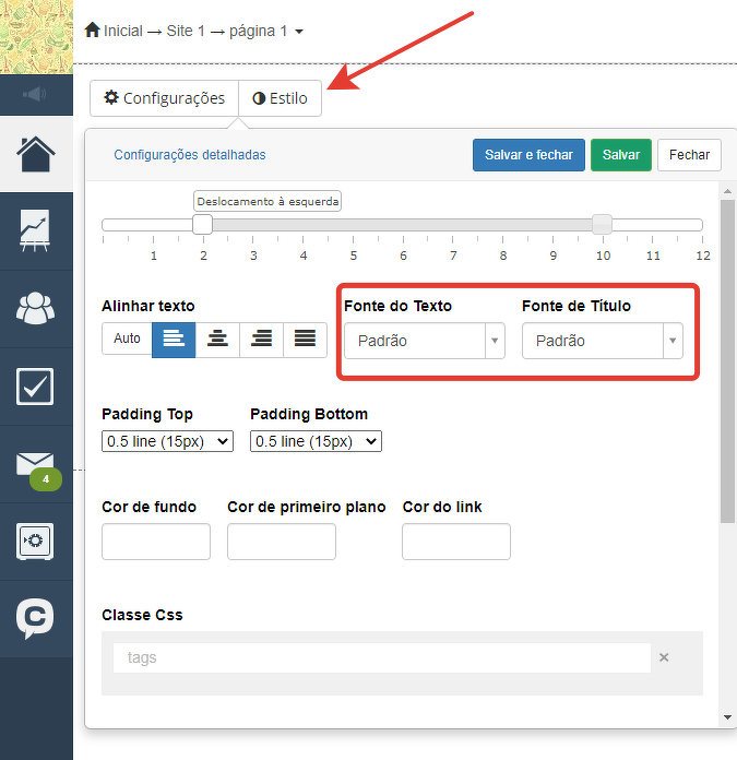 3. A fonte do texto e os títulos dos blocos individuais podem ser configurados na guia "Estilo" do bloco de que você precisa.